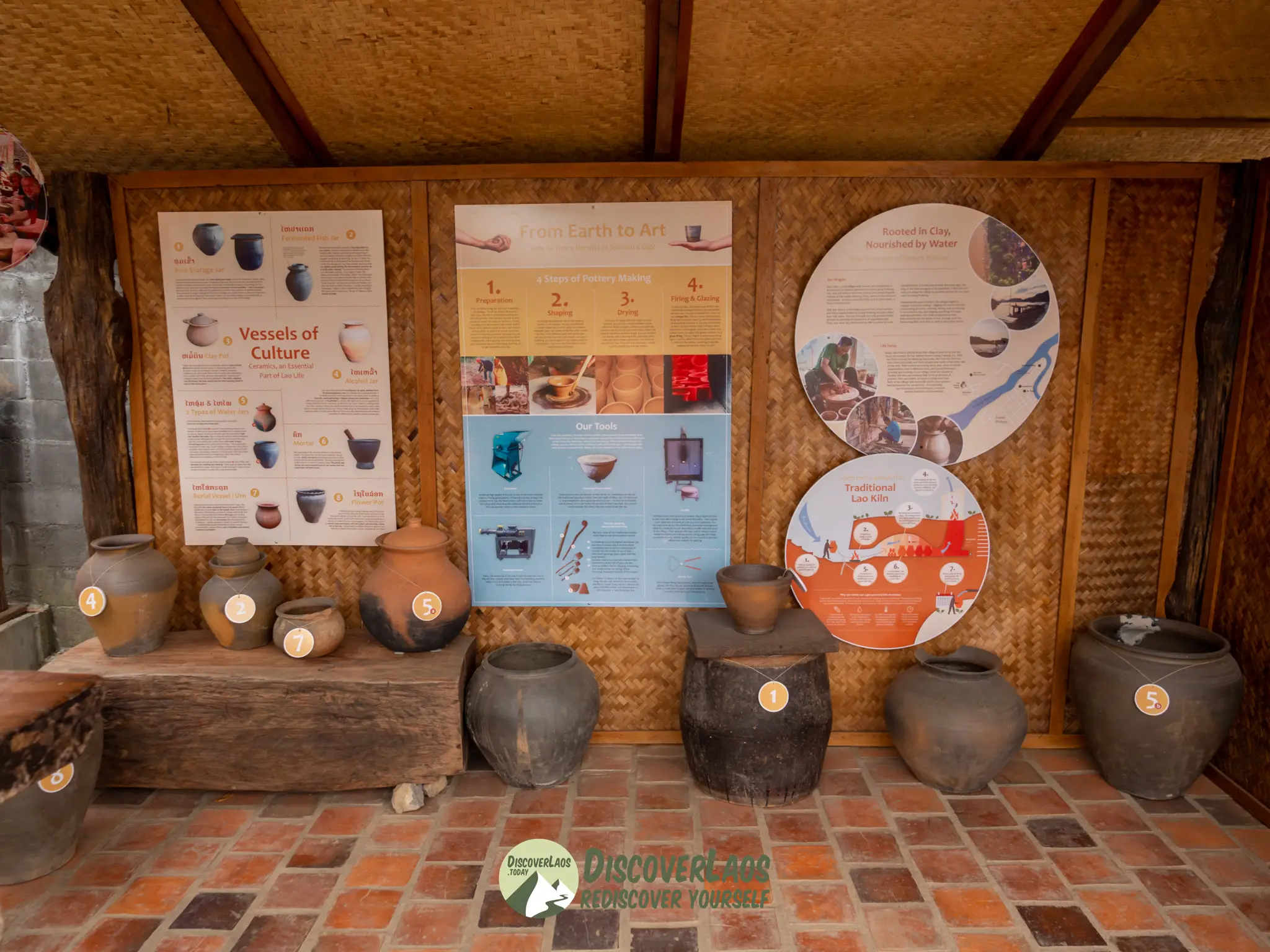 รายละเอียดการเดินทางเริ่มต้นจากทัวร์ศูนย์เครื่องปั้นดินเผาหมู่บ้าน 90 นาทีพร้อมเรียนรู้เกี่ยวกับวิถีชีวิตของคนลาว. ต่อไปเป็นการสาธิตเทคนิคเครื่องปั้นดินเผาใช้เวลานานหนึ่งชั่วโมงโดยครอบครัวคนท้องถิ่นตามด้วยโอกาสในการลงมือทำกับแขกทุกคนรวมถึงเด็ก ๆ ทัวร์จบลงด้วยอาหารลาว.