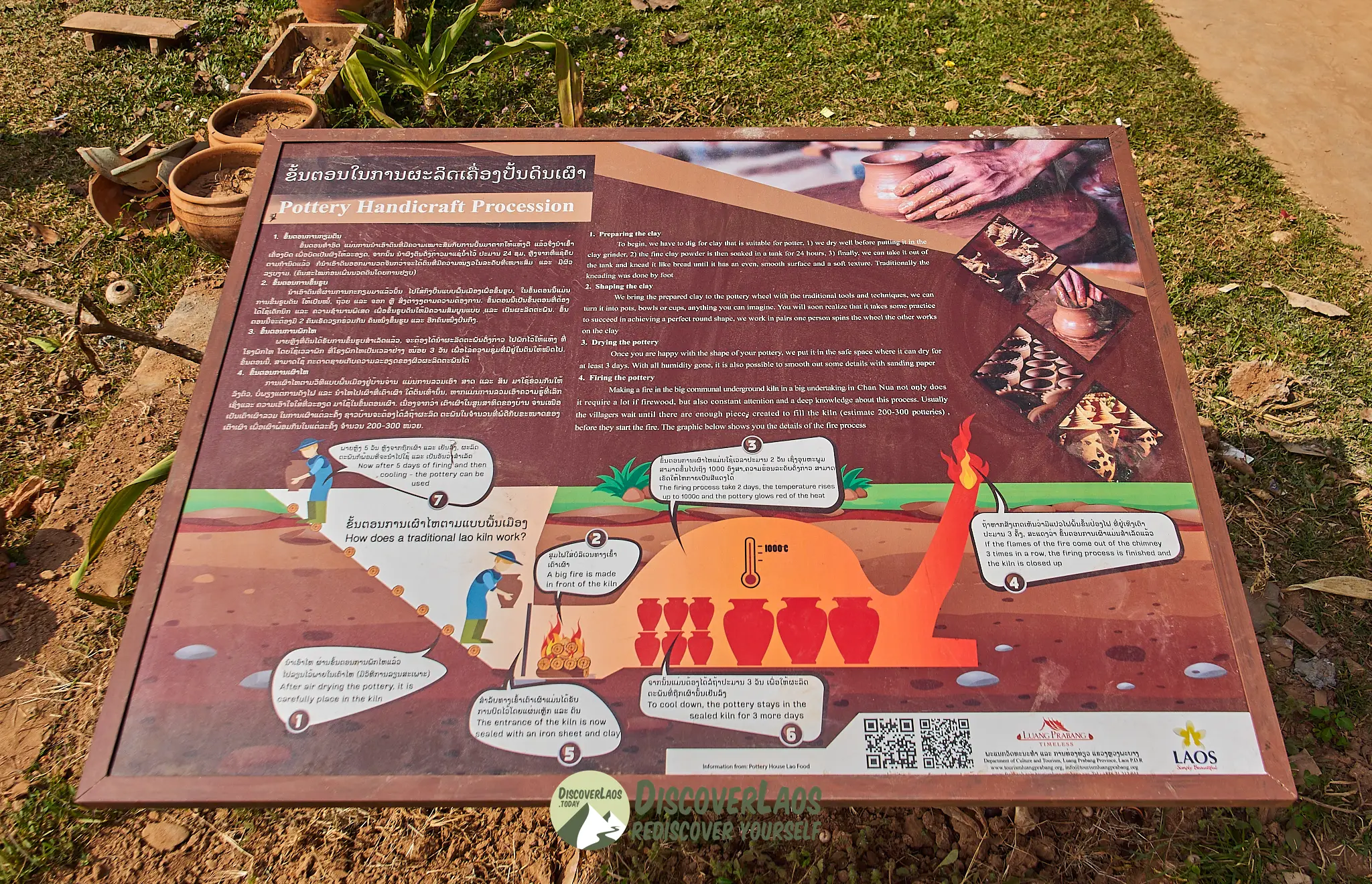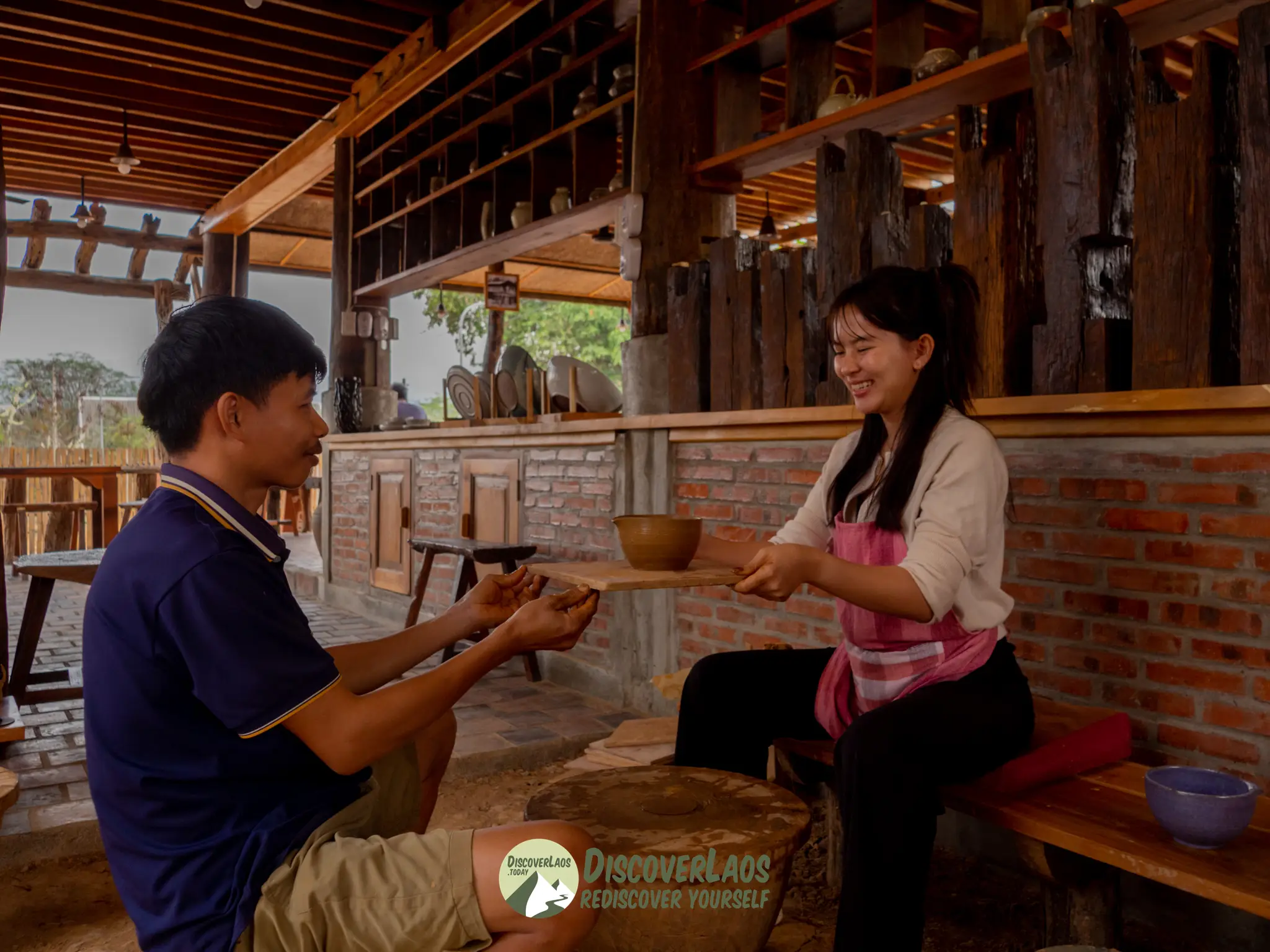 รายละเอียดการเดินทางเริ่มต้นจากทัวร์ศูนย์เครื่องปั้นดินเผาหมู่บ้าน 90 นาทีพร้อมเรียนรู้เกี่ยวกับวิถีชีวิตของคนลาว. ต่อไปเป็นการสาธิตเทคนิคเครื่องปั้นดินเผาใช้เวลานานหนึ่งชั่วโมงโดยครอบครัวคนท้องถิ่นตามด้วยโอกาสในการลงมือทำกับแขกทุกคนรวมถึงเด็ก ๆ ทัวร์จบลงด้วยอาหารลาว.